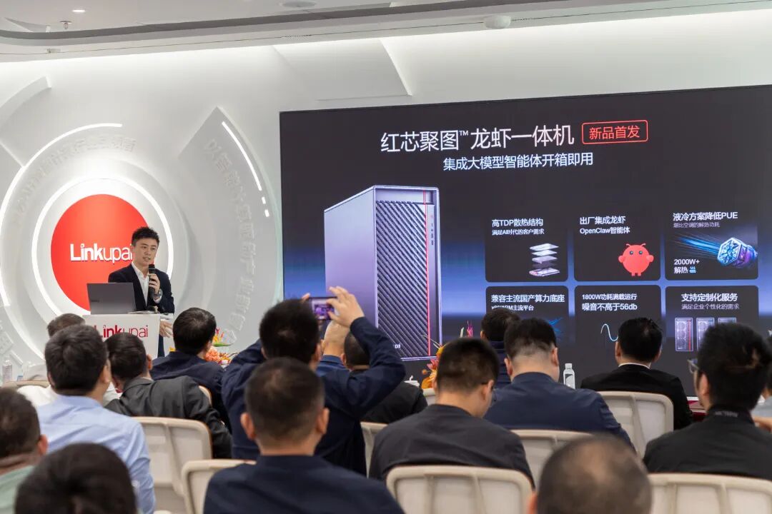 紧随技术分享,数聚红芯品牌营销中心总经理 吴志成Jason 正式发布适配OpenClaw龙虾应用场景的新品 红芯聚图™龙虾一体机。这款集算力硬件、软件系统、OpenClaw 核心能力于一体的智能终端,专为企业级场景打造:本地推理架构筑牢数据安全防线,内置全场景技能包覆盖全流程需求,极简操作界面大幅降低 AI 使用门槛,真正实现 “一键部署、智效兼备”,标志着我们在 AI 智能体产业化落地迈出关键一步。